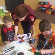 Žáci a žákyně v pěti týmech na pěti stanovištích společně tvořili výtvarná díla, která svátečně vyzdobila naší školu.